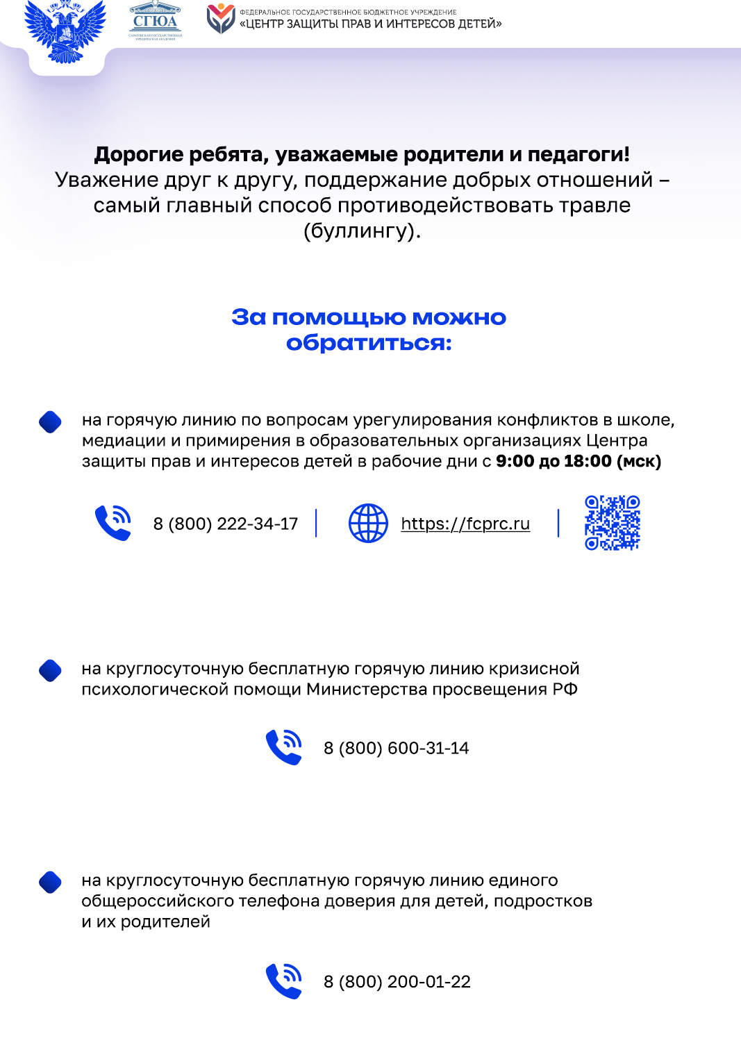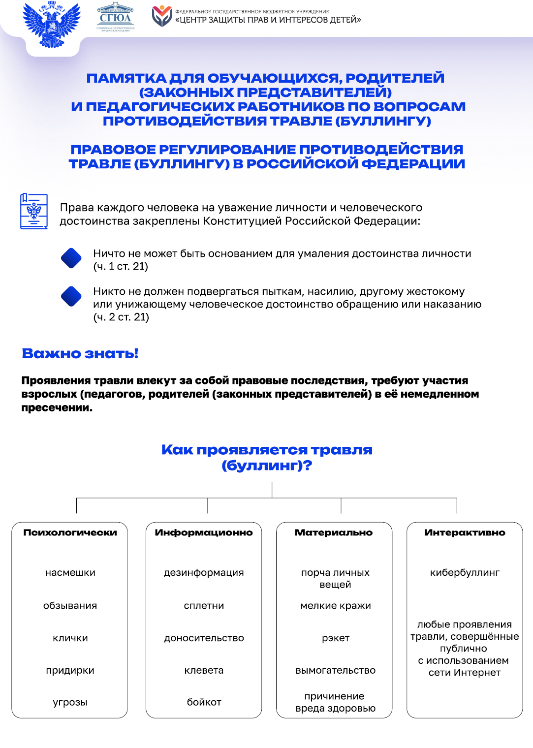 Памятка по противодействию буллинга